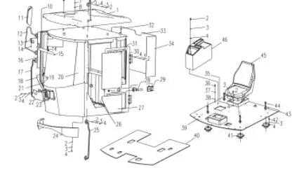 mostra vista explodida e ordem de montagem, código de fábrica,